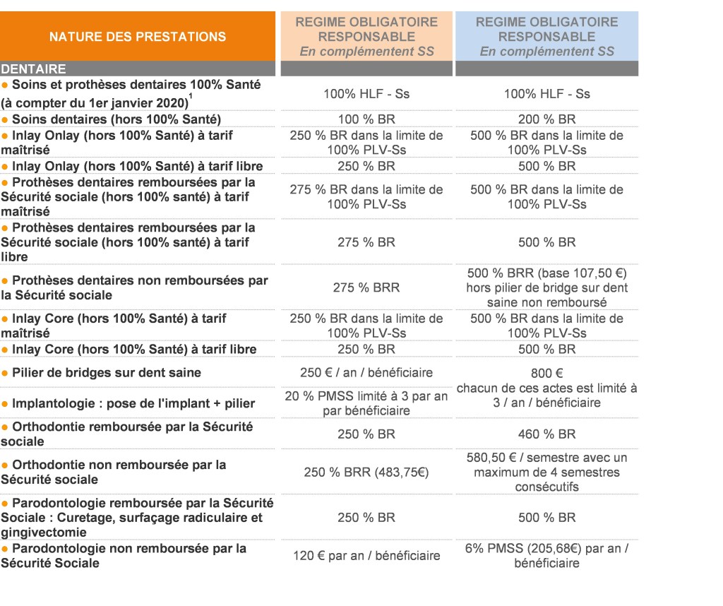 - Implant dentaire : remboursement maximum actuel de 685€ contre 800€ au 1er janvier 2021.