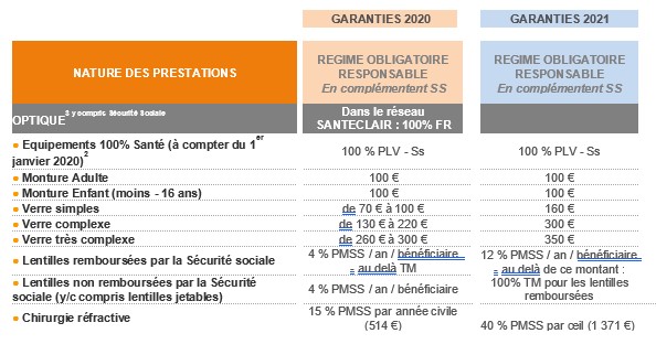 Pour commencer, il n’y a plus de réseau obligatoire seulement un réseau facultatif. De plus, on constate une belle évolution des remboursements des verres en complément du remboursement de la SS ainsi que des lentilles. Et la chirurgie réfractive passe de 514€/an à 1.371€ par œil.