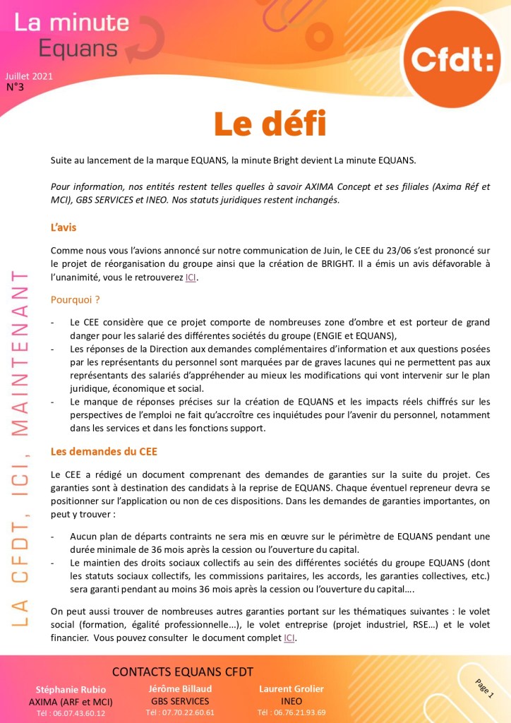 GBS SERVICES La Minute Equans – N°3 15 juillet 202115 juillet 2021 cfdtgbss CFDT – LA MINUTE EQUANS – N°3 – Juillet 2021Télécharger Partager : Cliquer pour partager sur X(ouvre dans une nouvelle fenêtre) X Cliquez pour partager sur Facebook(ouvre dans une nouvelle fenêtre) Facebook J’aime chargement… Sur le même thème Publié par cfdtgbss Voir tous les articles par cfdtgbss Partager : Cliquer pour partager sur X(ouvre dans une nouvelle fenêtre) X Cliquez pour partager sur Facebook(ouvre dans une nouvelle fenêtre) Facebook J’aime chargement…