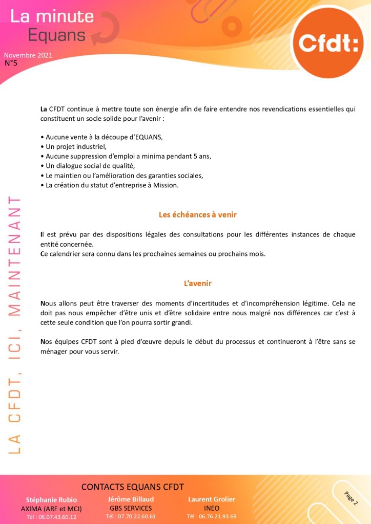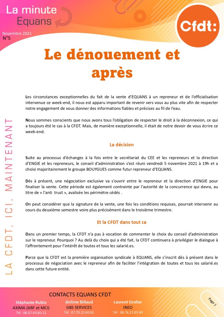 Afin que tout le monde reçoive notre information et pour ceux ou celles qui auraient pu la louper, vous trouverez notre communication, La Minute Equans, ci-dessous.
